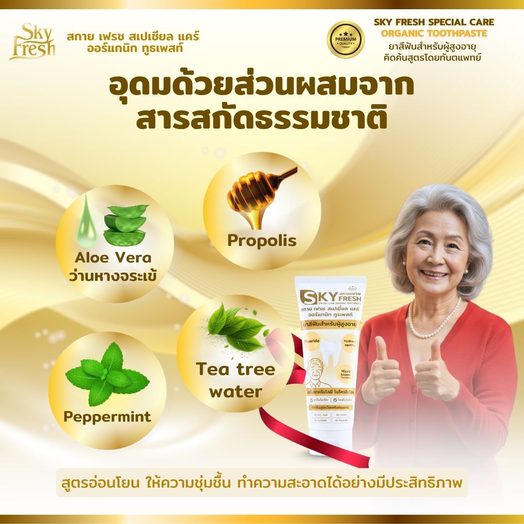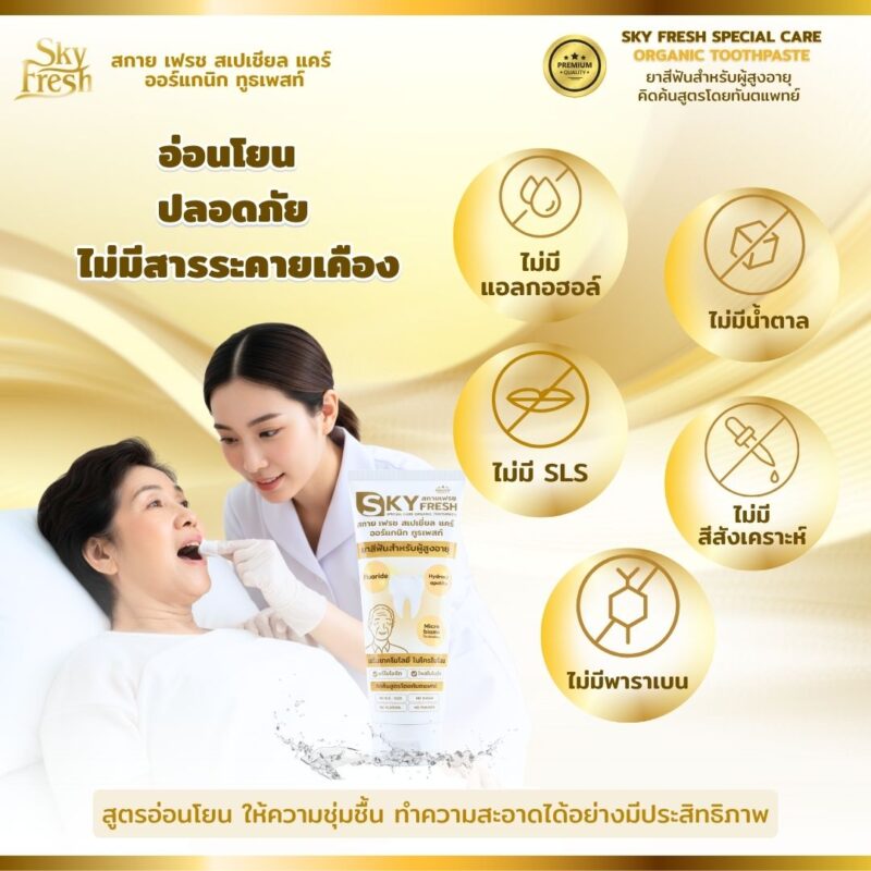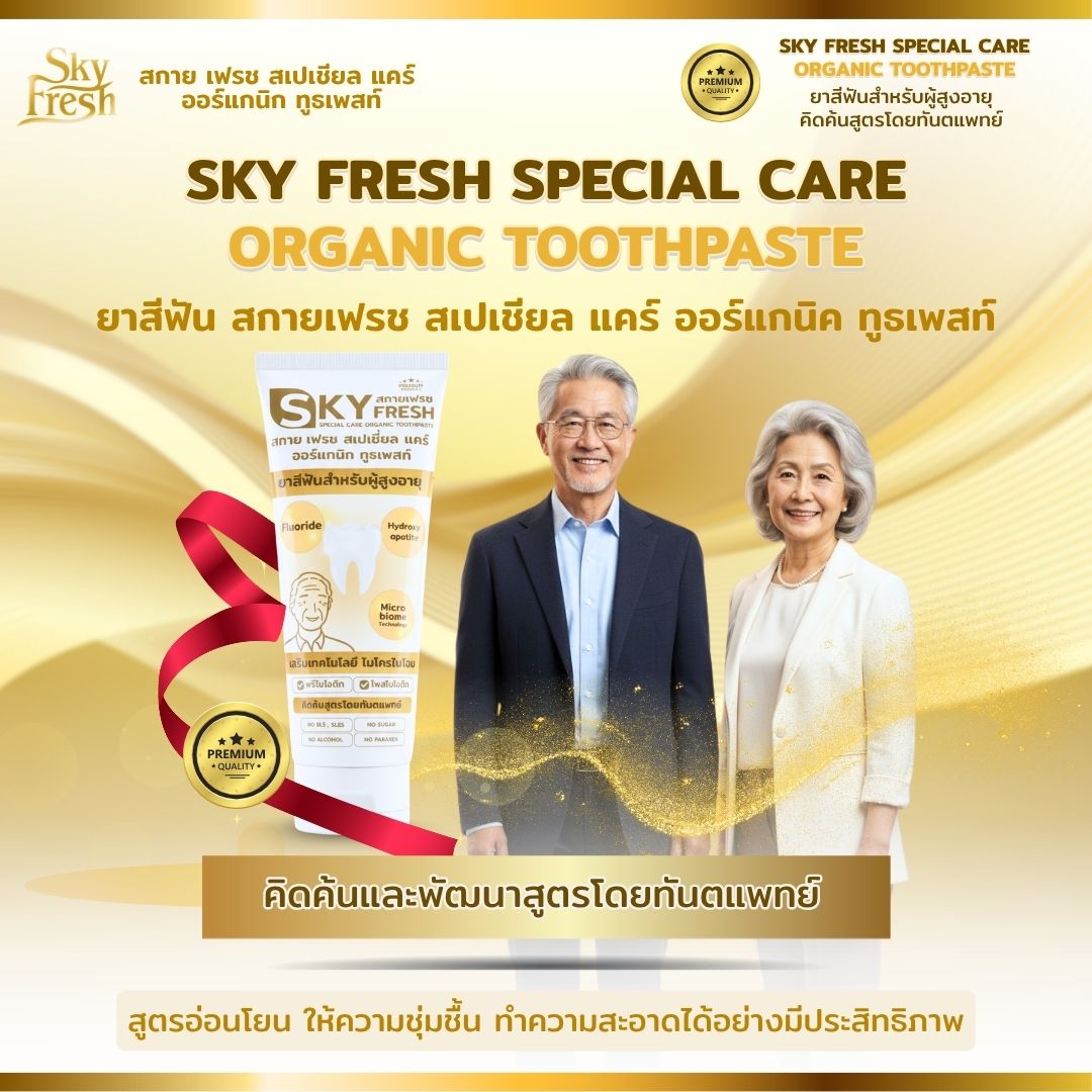 • ยกระดับการดูแลช่องปากสำหรับผู้ที่ต้องการความอ่อนโยนแต่ยังครบประสิทธิภาพ · Sky Fresh Special Care Organic Toothpaste — สูตรพัฒนาโดยทันตแพทย์ เพื่อความสบายในทุกการแปรงฟันทุกวัน.