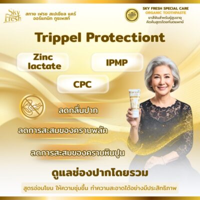 Triple Protection (CPC/IPMP/Zinc Lactate)  ลดการเกิดคราบพลัค และลดกลิ่นปาก